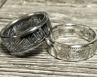 Silver 1 Riyal Ring authentic Saudi Arabia coin Women's, Men's, Engagement, Islamic Anniversary Wedding Custom handmade antique vintage